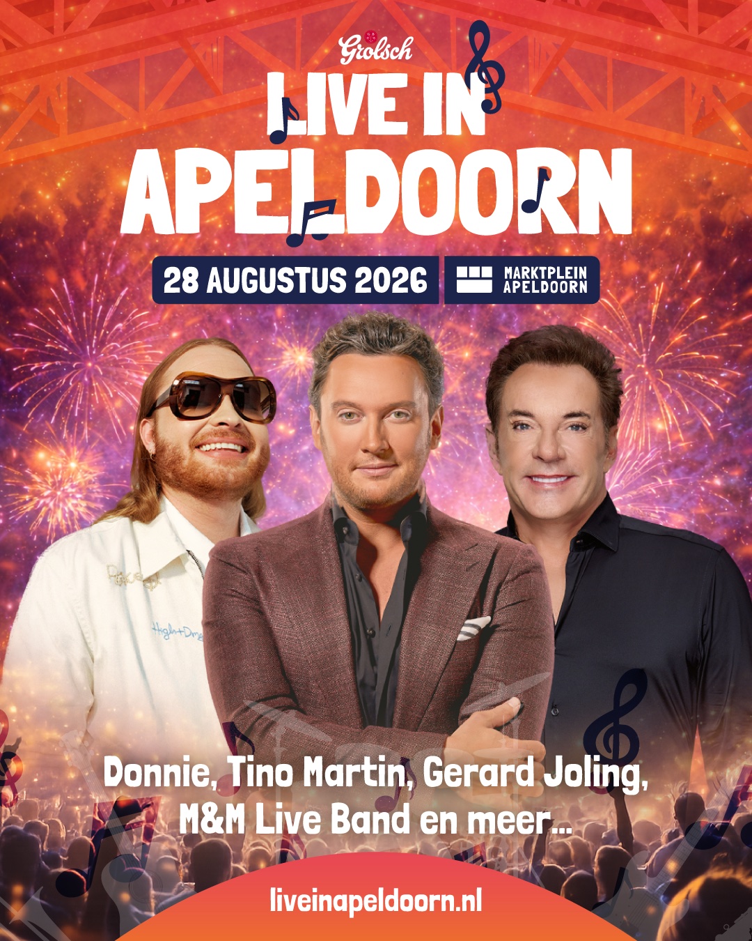 Op 28 augustus 2026 verandert het Marktplein opnieuw in één grote zingende mensenmassa tijdens Grolsch LIVE in Apeldoorn.